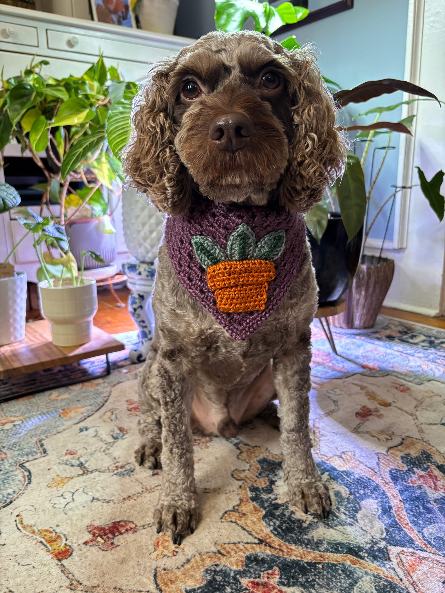 - Plum main bandana with no border. Succulent with pumpkin pot