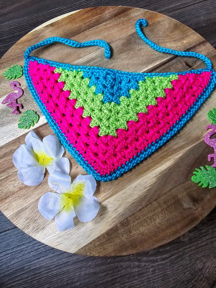 This listing is for a striped bandana of any color of your choosing. This can be made from anywhere from 2-5 colors with stripes of various thicknesses. These will be done in the order that you list the colors (top to bottom).
